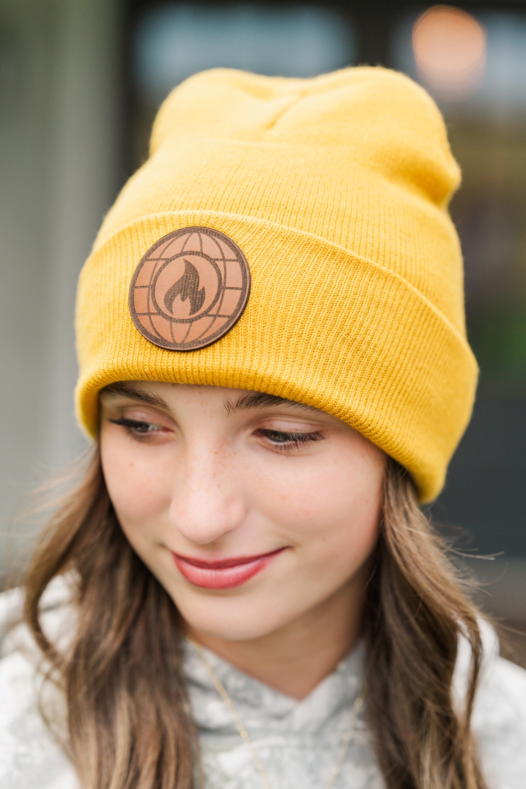 This unisex hat features a sleek leather logo patch and comes in Gray, Burnt Orange, and Mustard Yellow. Made from soft, cozy fabric, it’s perfect for adding a touch of warmth and style to any outfit.